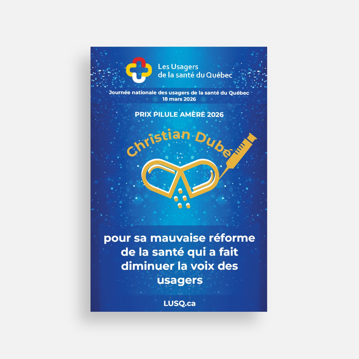 À l’occasion de la première édition de la Journée nationale des usagers de la santé du Québec (JNUSQ), qui se tient le 18 mars 2026, Les Usagers de la santé du Québec (LUSQ) dévoile les trois prix symboliques décernés afin de mettre en lumière les bons et les moins bons coups du réseau québécois de la santé et des services sociaux.